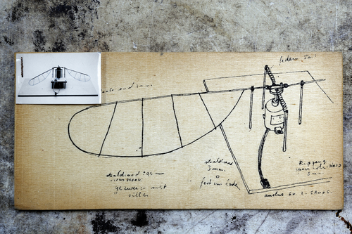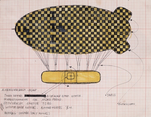 The Belgian artist Panamarenko (pseudonym of Henri Van Herwegen) studied at the Academy of Fine Arts in Antwerp from 1955 to 1960 but just as often spent time in the City Library on Conscienceplein, where he sought out scientific and technical knowledge. His oeuvre consists of flying crafts, cars, submarines, Zeppelins and prehistoric walking chickens. As a versatile artist he is described as an inventor, mathematician, poet and visionary.
